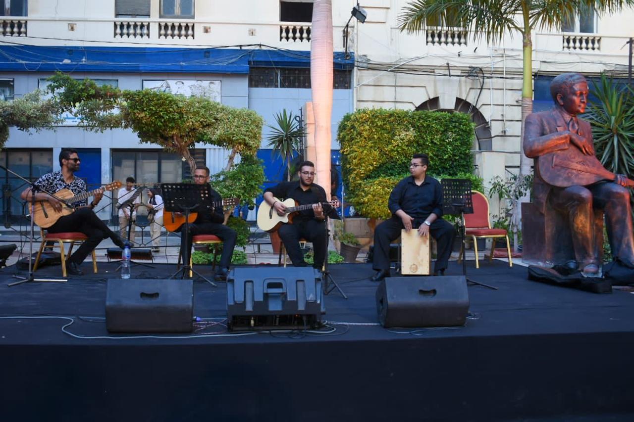 وكانت الساحة الخارجية للمسرح قد شهدت فقرات فنية لطلاب فصل الجيتار تدريب الدكتور احمد عبد الرحمن التابع لمركز تنمية المواهب تضمنت مختارات من الفلكلور الاسبانى وعدد من الحان الموسيقى العربية الشهيرة .