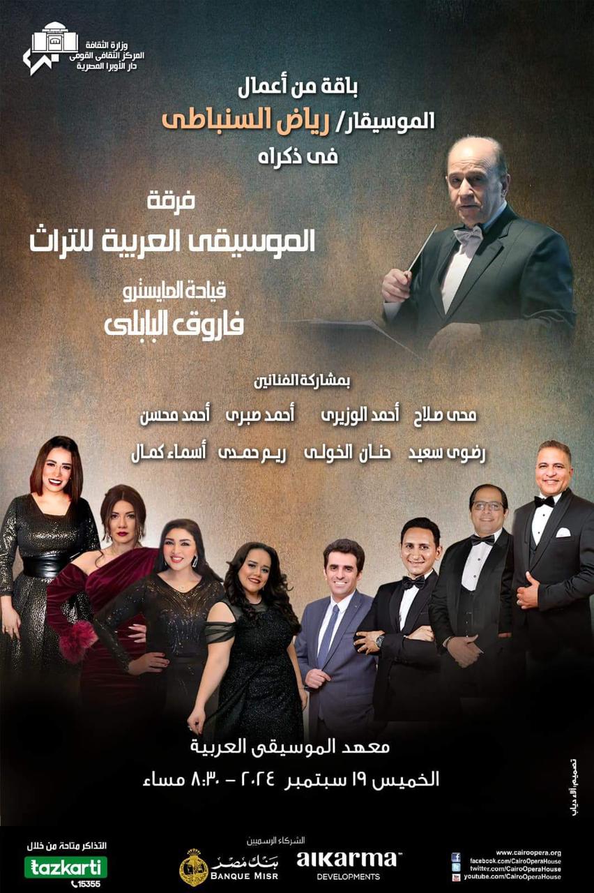 فى إطار فعاليات الثقافة المصرية للإحتفاء بذكرى المبدعين من عمالقة الزمن الجميل تنظم دار الأوبرا برئاسة الدكتورة لمياء زايد حفلاً لفرقة الموسيقى العربية للتراث بقيادة المايسترو فاروق البابلي فى ذكرى الموسيقار الكبير رياض السنباطي وذلك فى الثامنة والنصف مساء الخميس ١٩ سبتمبر بمعهد الموسيقى العربية.