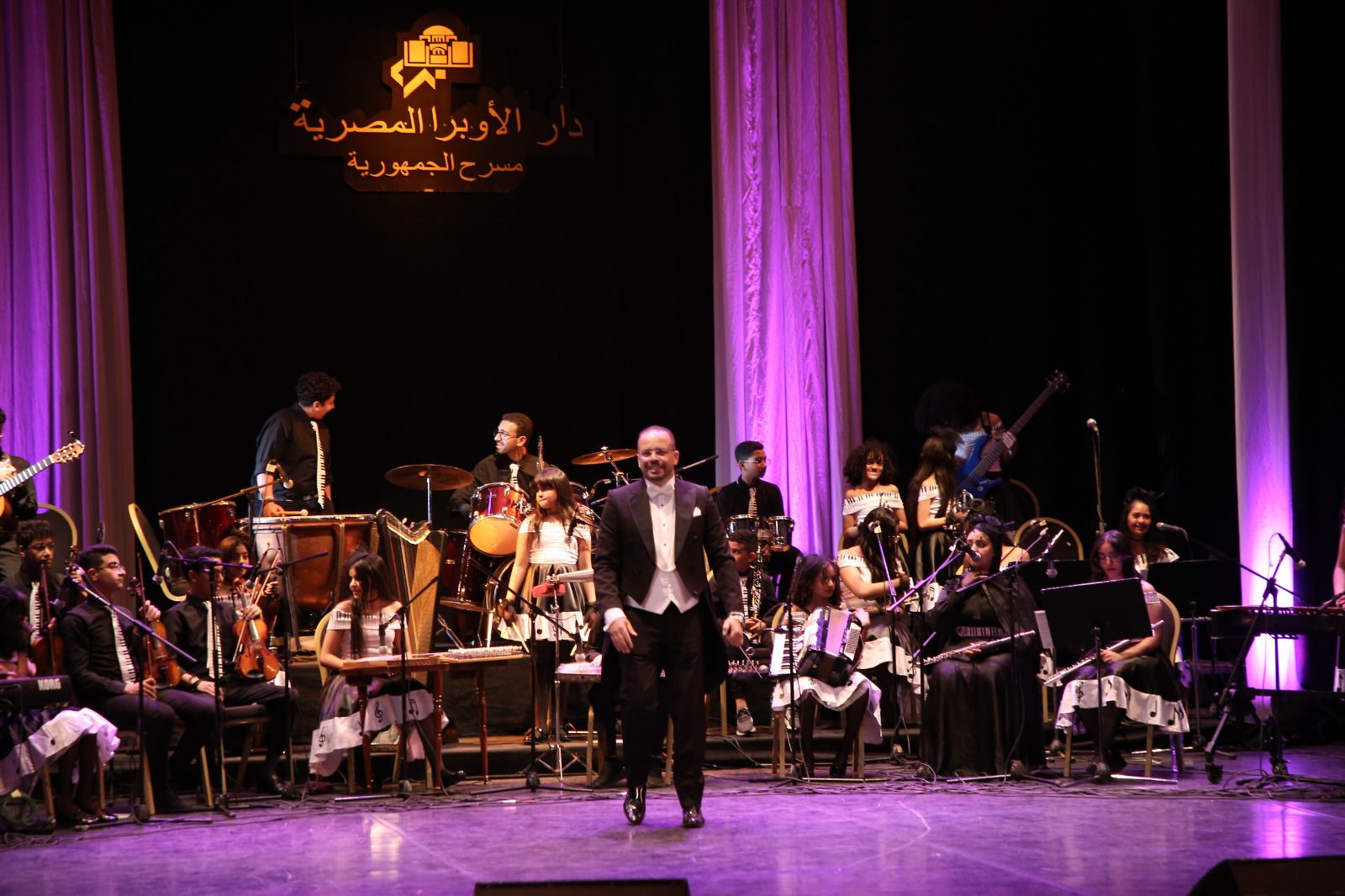 وكانت الاحتفالية قد شهدت فاصلين الاول لاوركسترا الاطفال تدريب وقيادة الدكتور راجي المقدم وضم موسيقي فيها حاجة حلوة ، كرنفال باريس ، قلبي ومفتاحه ، ميدلي كلثوميات ، تتر بداية المال والبنون ، سهر الليالي ، خلي بالك من عقلك ، قضية عم احمد ، بيلا تشاو - تتر بداية ونهاية مسلسل رأفت الهجان ، الاقصر بلدنا اداها لوجي هاني ، موسيقي الحب والسلام من فيلم عروس النيل علي آلة الهارب اداء جولي وشريف دعية ، مقدمة بعيد عنك ، كل ده كان ليه ، سألوني الناس ، الحياة حلوة ، زي العسل ، اما الثانى لفصل الغناء العربي كورال الشباب تدريب وقيادة دكتورة سهير حسين وتضمن مختارات من اعمال الموسيقى العربية كان منها امي يا نور بيتنا ، ماما يا حلوة ، احن قلب ، بيت العز ، انشودة امي ، اول حياتي ياما ، نص الدنيا ، يا بنت بلدي ، امي في كوم ، ست الحبايب واداهم مريم جميل - ادهم - جاسمين - ملك احمد عبد المنعم - نوريانا محمد - محمد عادل - لاما- ملك احمد - لاما حازم - محمد البحيري .