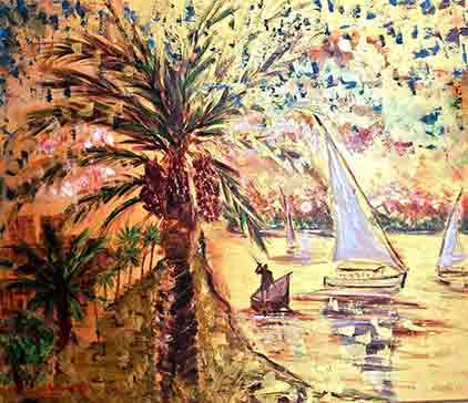 Noteworthy, the Lotus Egypt Fine Arts Group includes about 100 distinguished Egyptian female artists. It was founded 5 years ago by artist Salwa El Hamamsy, a member of the Egyptian Writers Union and the Fine Artists Syndicate.